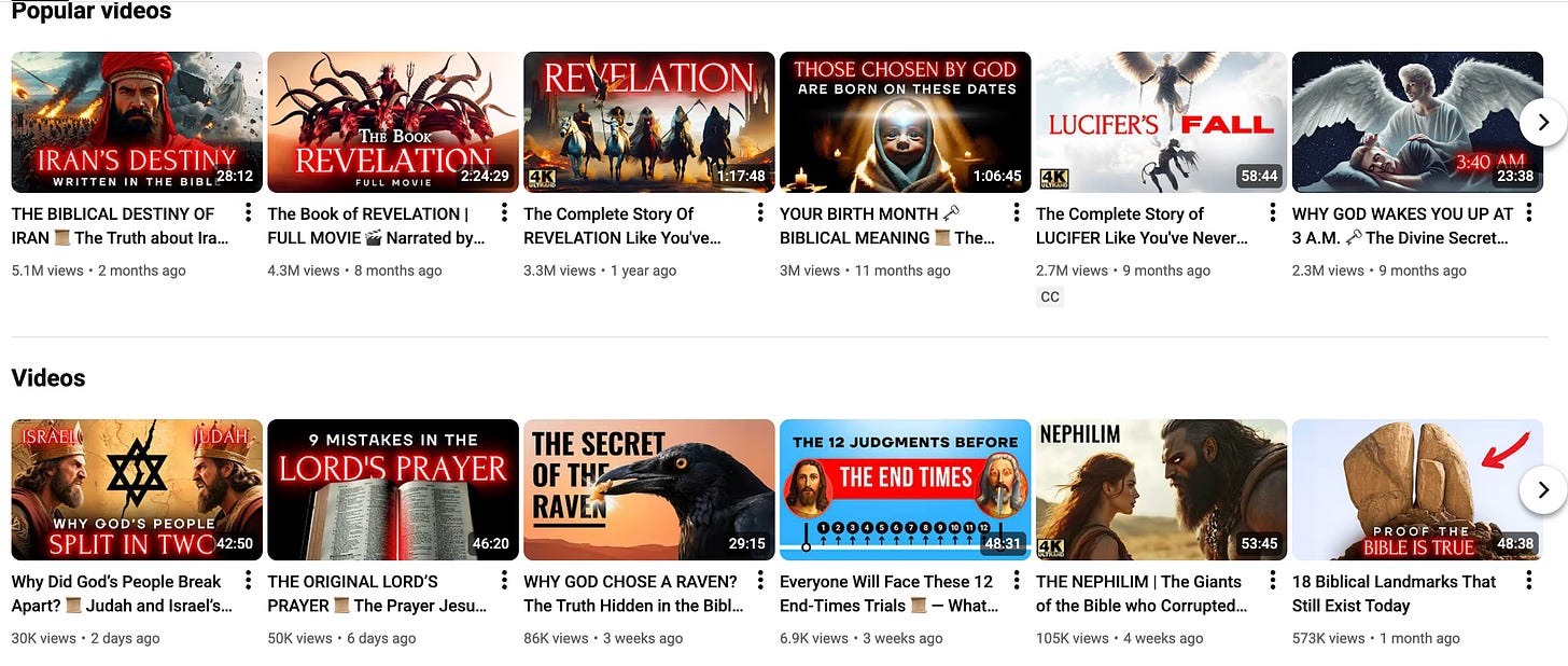 Some of these Christian AI generated channels are huge. There is one called the Power of the Word that has been recommended to me multiple times that has nearly half a million followers.