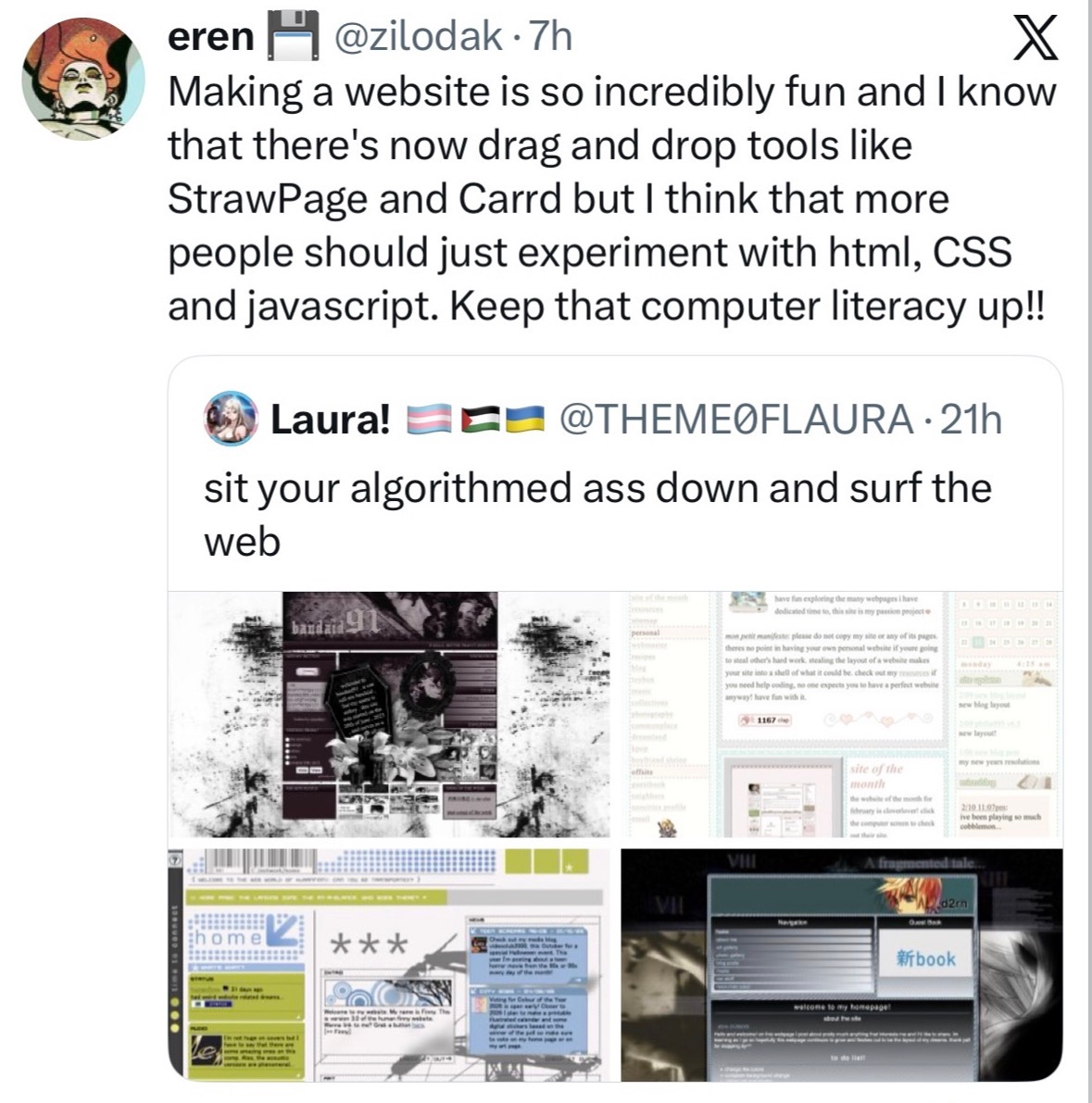 Regarding that last tweet about coding your own websites: I learned how to code because of Neopets' homepages when I was 8 years old. I knew that I needed to understand HTML/CSS to make my page look cool but I didn't know about copy or paste (oh, sweet innocence). I would write down my code, make edits, and transcribe it in a notebook. This is the definition of "grit", no? It's essential to learning and creativity!!