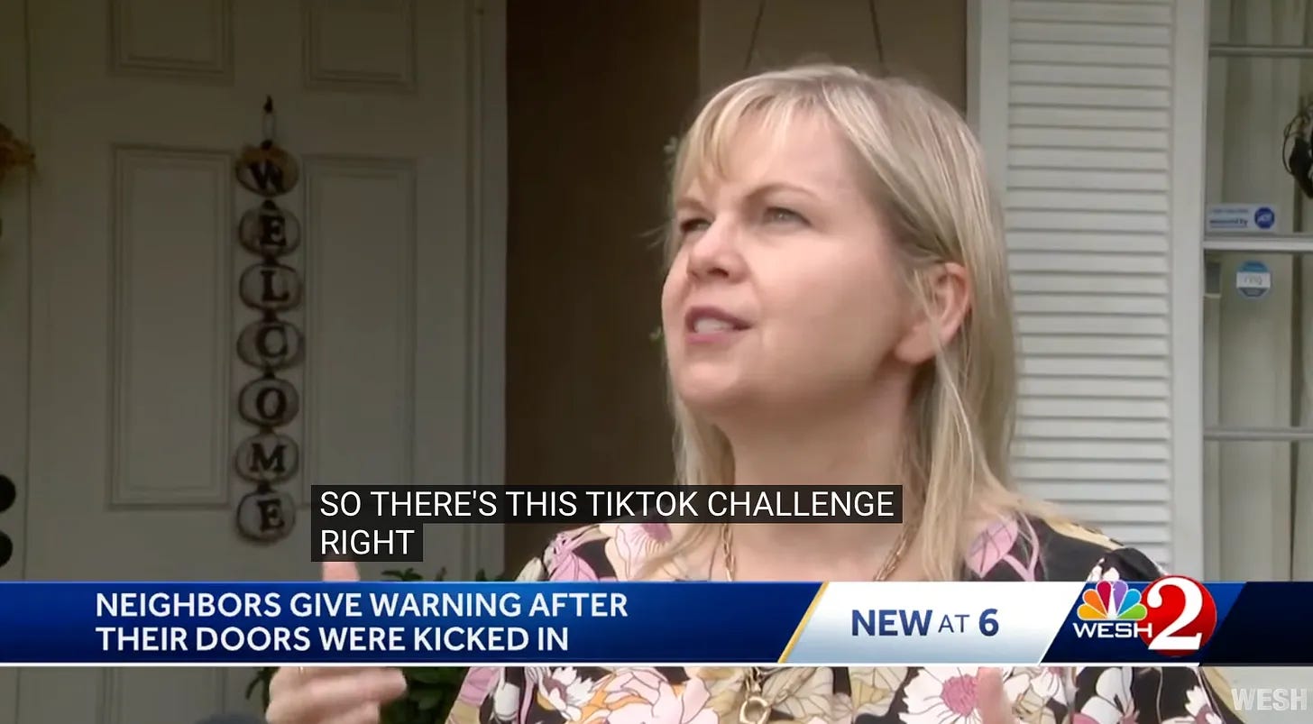 “There’s a TikTok challenge right now, where instead of ding dong ditch, you ding dong kick the door as hard as you can,” claimed Lola Kelly, a Florida resident.