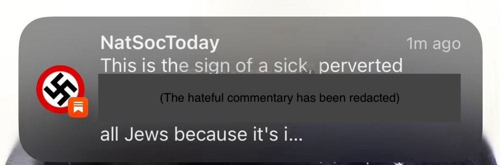 Substack sent a push alert encouraging users to subscribe to a Nazi newsletter that claimed Jewish people are a sickness and that we must eradicate minorities to build a “White homeland.”