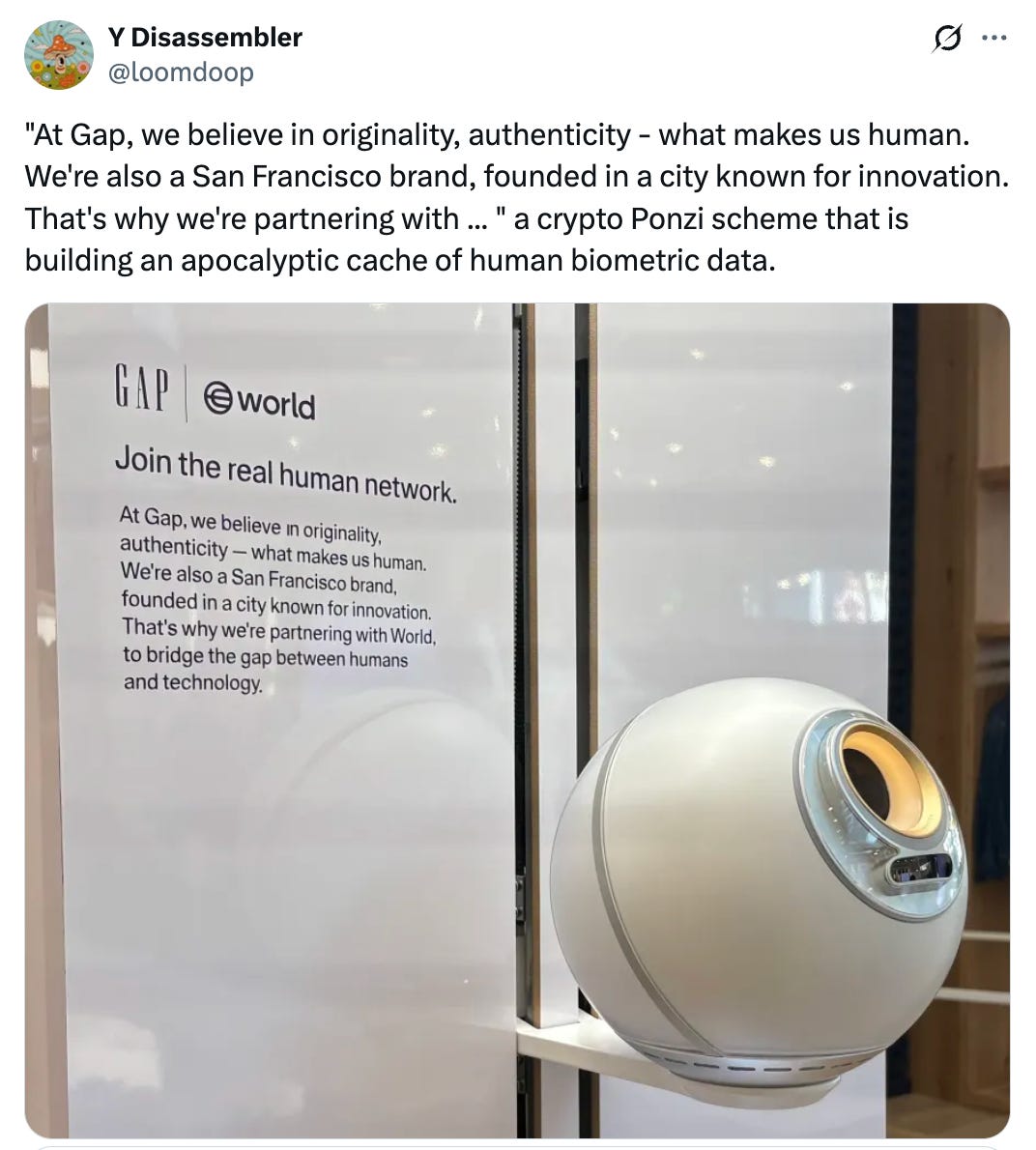 GAP partnered with Sam Altman’s weird AI eye-scanning orb company for some reason: